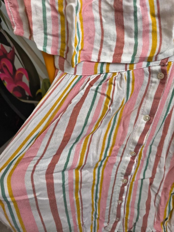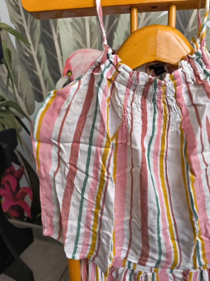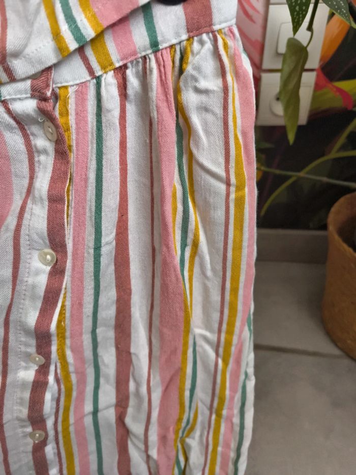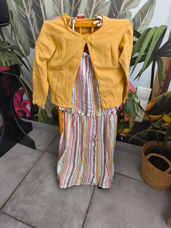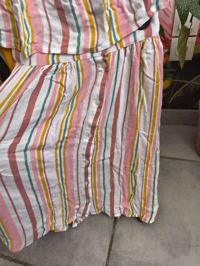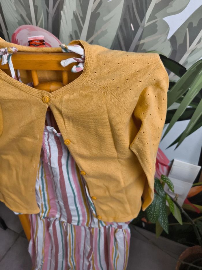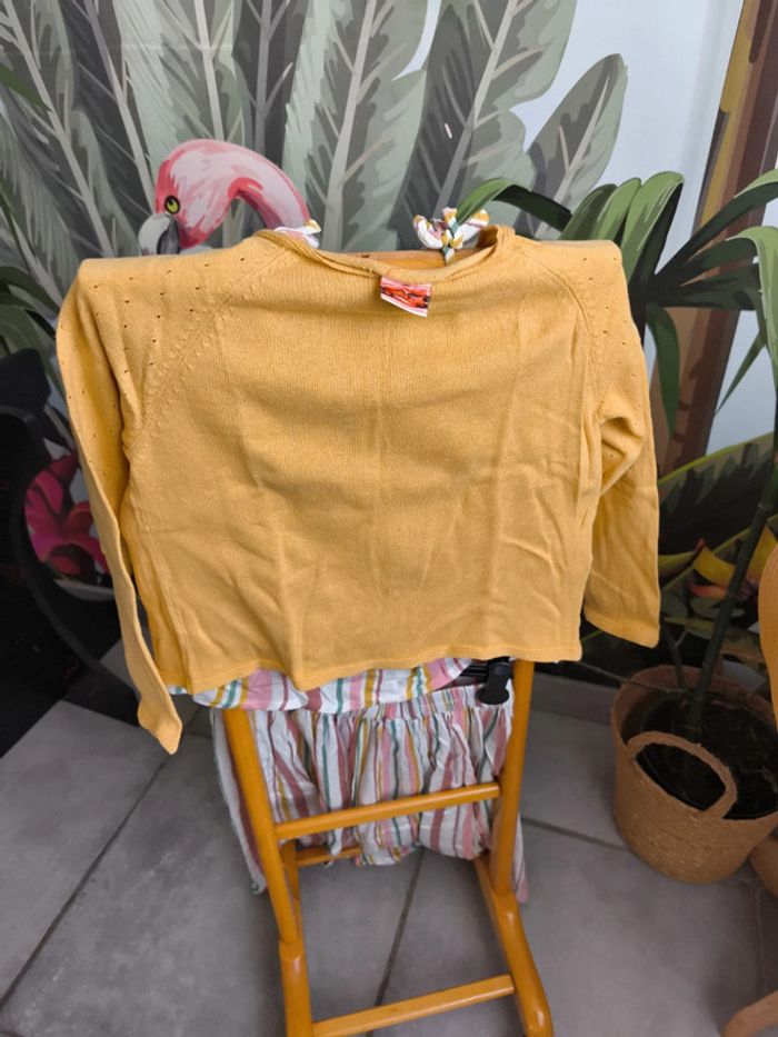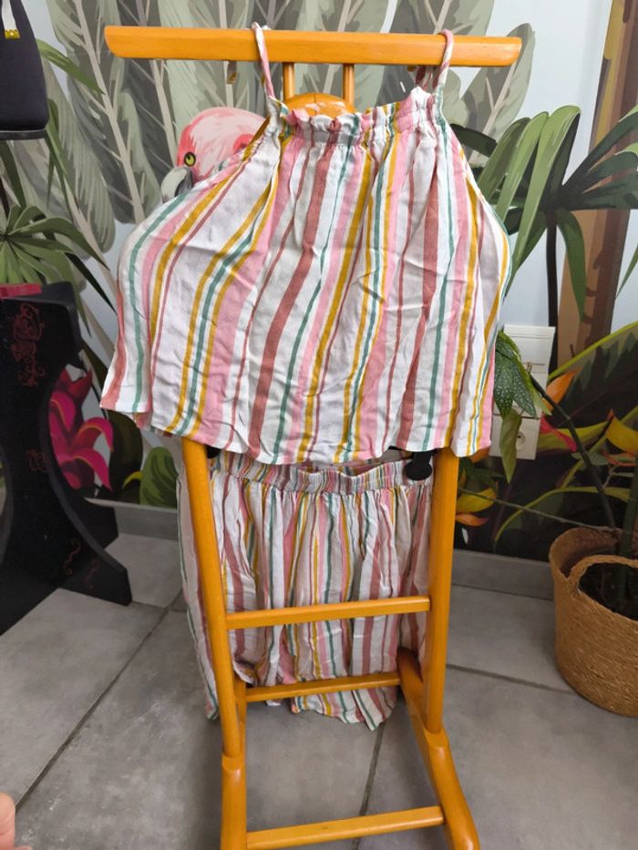#6ansmarylinebonte ☺️ N'hésitez pas à consulter mes autres annonces, 🏵️Ensemble 3 pièces. Débardeur et jupe Kiabi ( des fils tirés, prévoir de coudre au niveau des boutons car se défont facilement) et gilet tape a l'oeil (marque dans le dos dans le tissu).