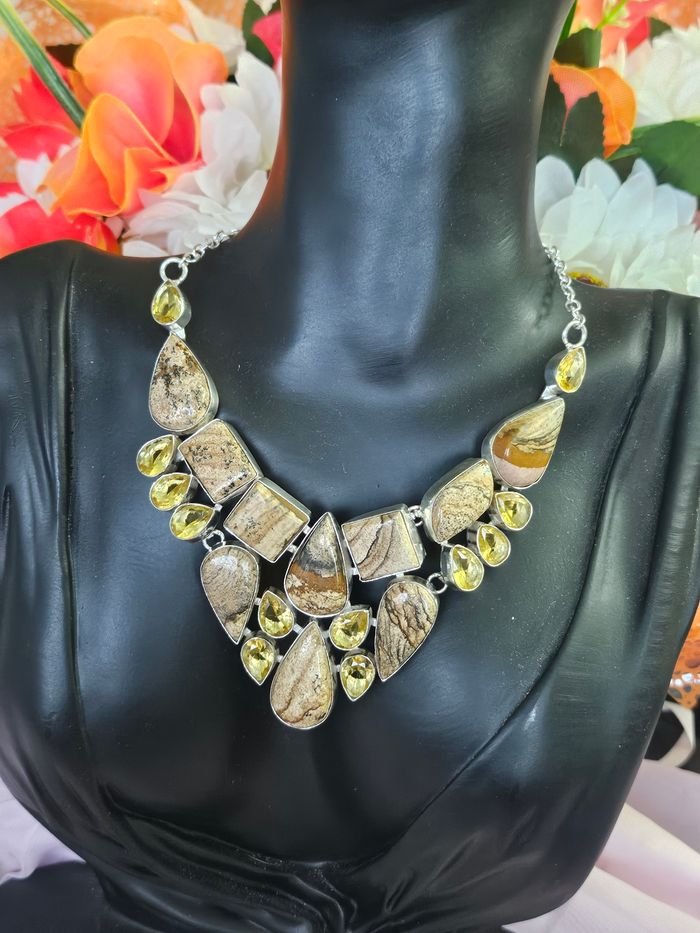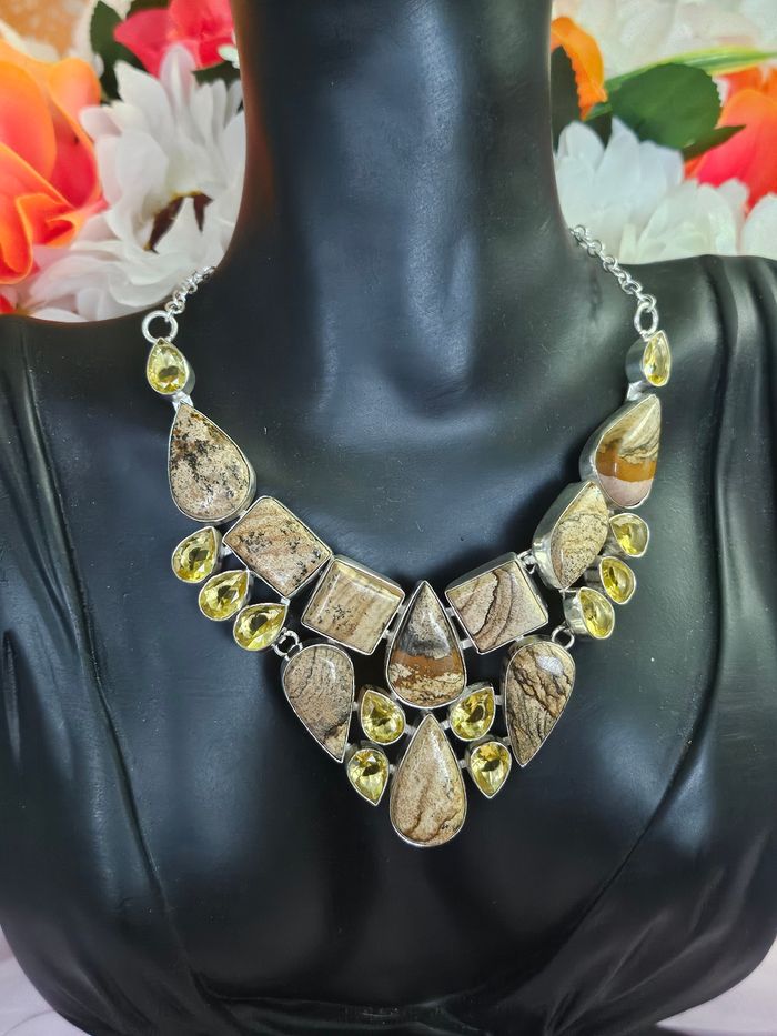 Collier en argent sterling 925 avec pierres citrine et jaspe picture - photo numéro 1