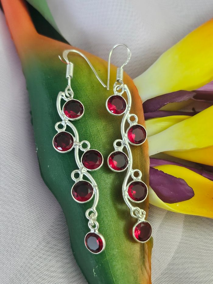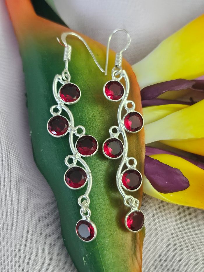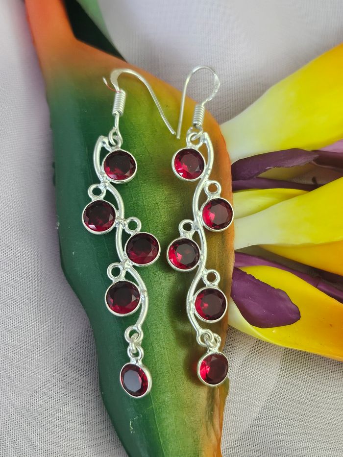 Boucles d oreilles en argent sterling 925 avec pierre grenat rouge - photo numéro 1