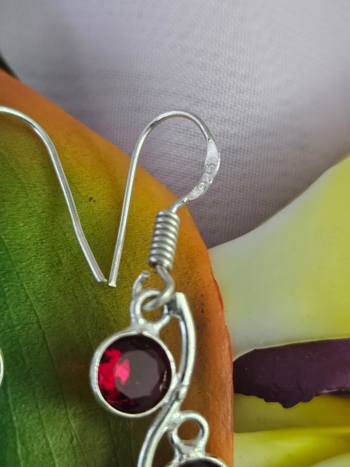 Boucles d oreilles en argent sterling 925 avec pierre grenat rouge - photo numéro 4