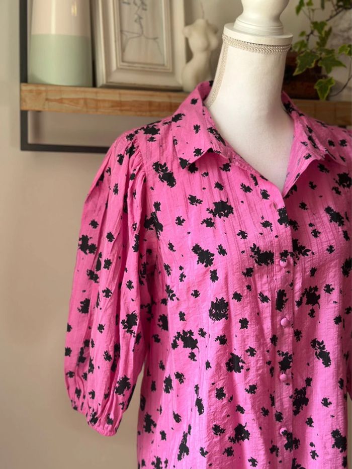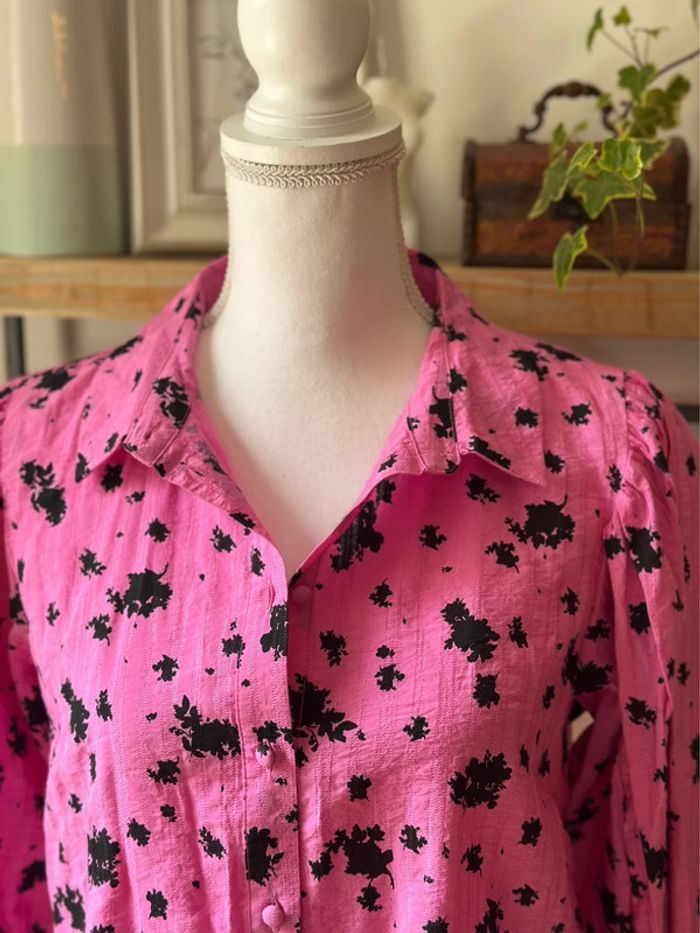 Chemise rose à imprimé noir - Ichi - taille 36 - photo numéro 9