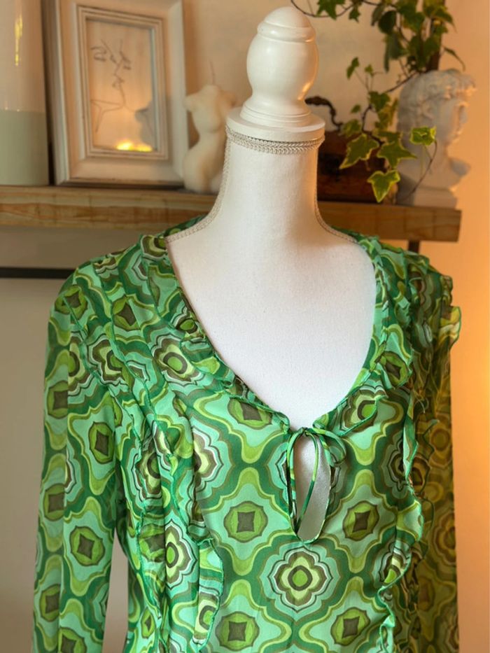 Blouse fluide à motifs rétro verts - Zara (Taille L) - photo numéro 5