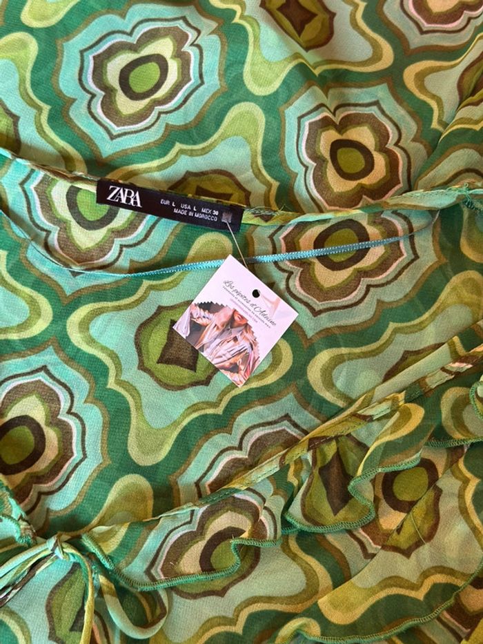 Blouse fluide à motifs rétro verts - Zara (Taille L) - photo numéro 2