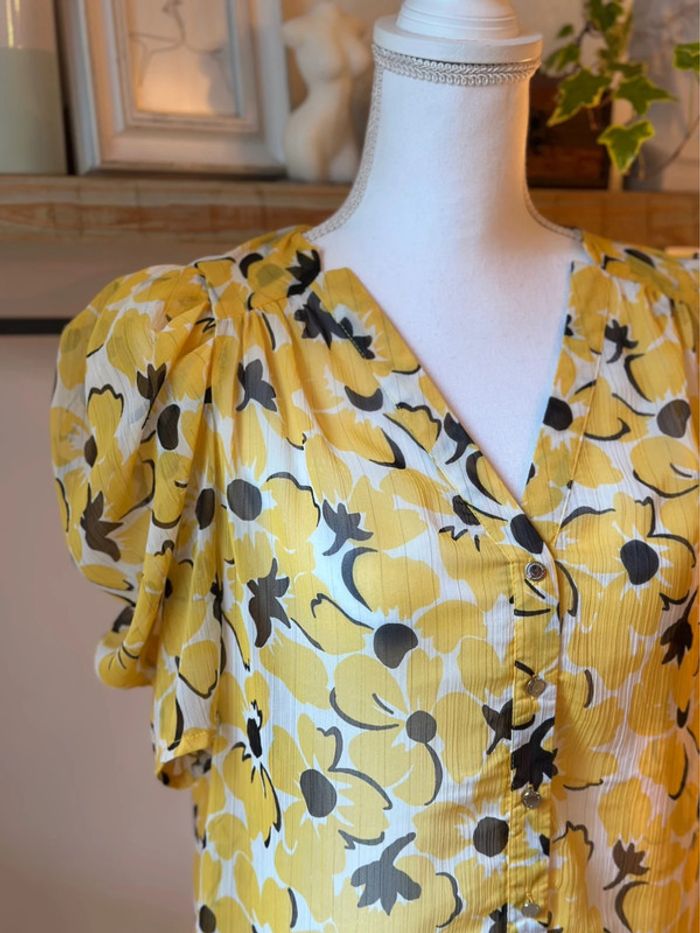 Blouse légère fleurie jaune Morgan – Taille 34/36 - photo numéro 3