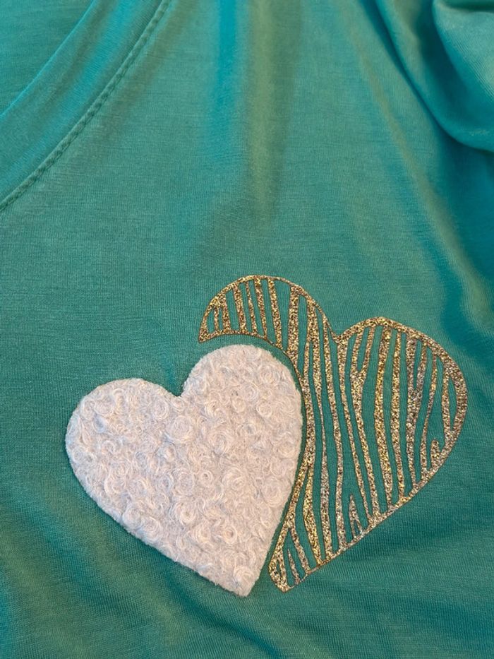 T-shirt vert brodé cœur taille U - L’ere du temps