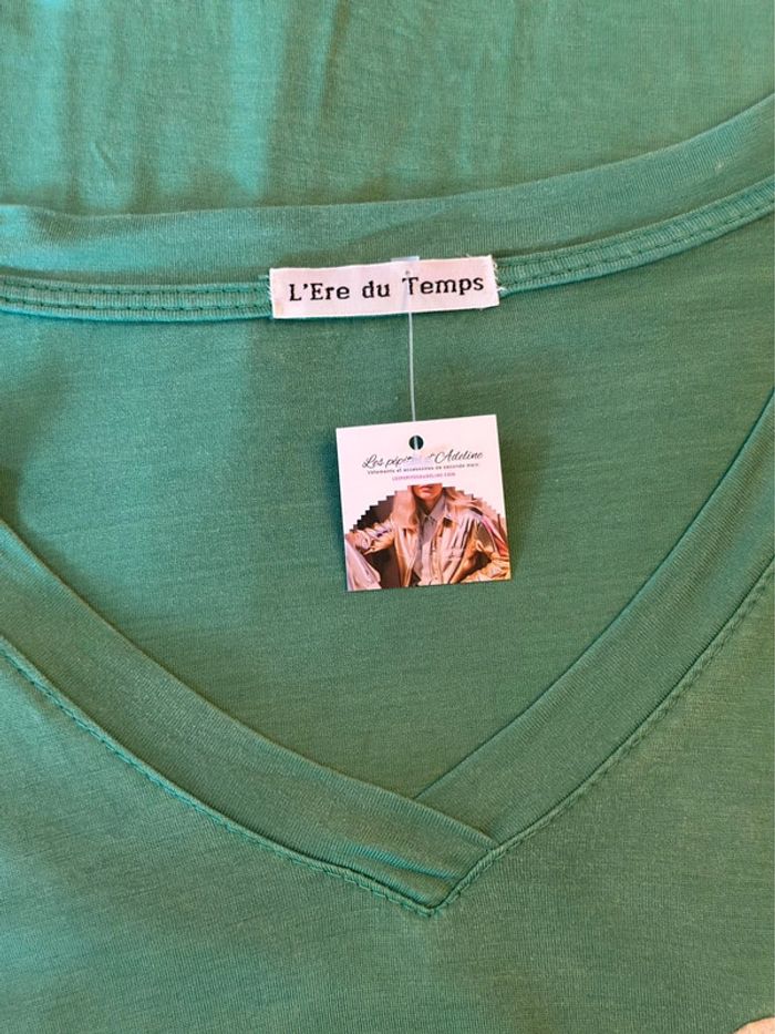 T-shirt vert brodé cœur taille U - L’ere du temps - photo numéro 8