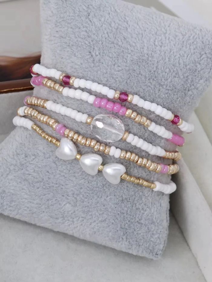Lot de 5 bracelets perles – blanc, doré, rose  – Neufs - photo numéro 2