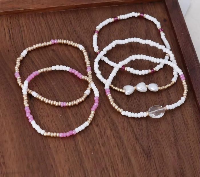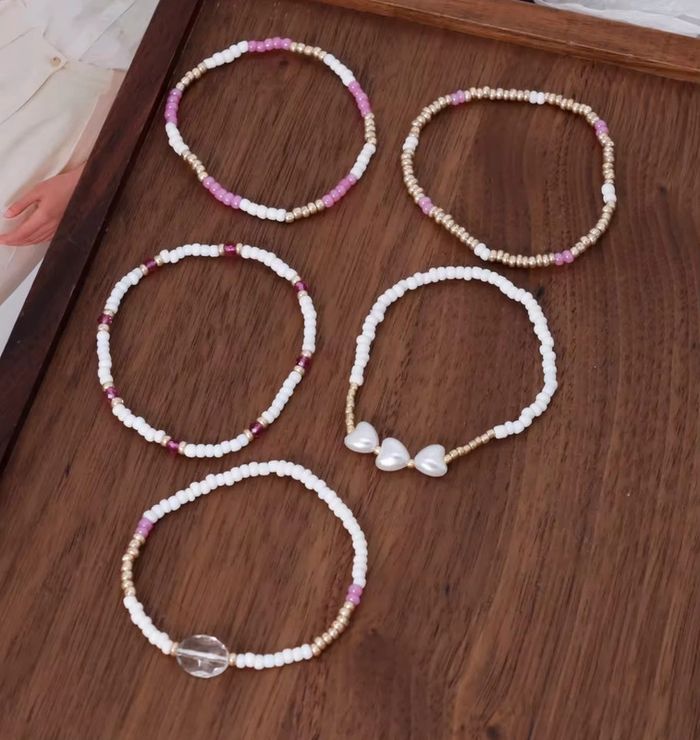 Lot de 5 bracelets perles – blanc, doré, rose  – Neufs - photo numéro 1