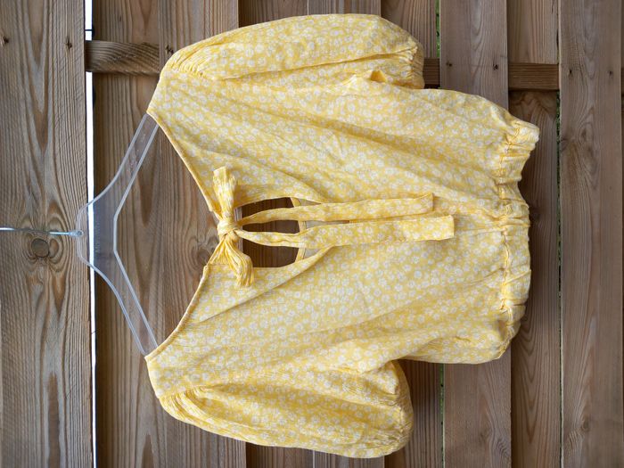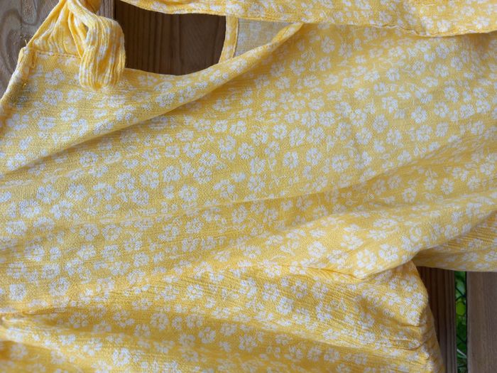 Blouse jaune fleurs blanches A nouer dans le dos Plus d'étiquette Bas dos élastiqué Longueur 44 cm 34 H&M