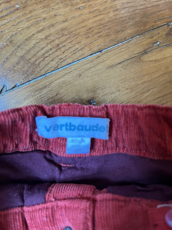 Pantalon velours côtelé rouge Vertbaudet 3 Mois. Porté mais peut avoir une seconde vie :)