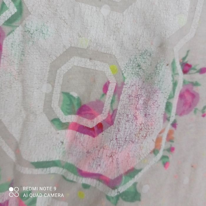 Fleurs fuchsia. Flocage un peu usé. C7