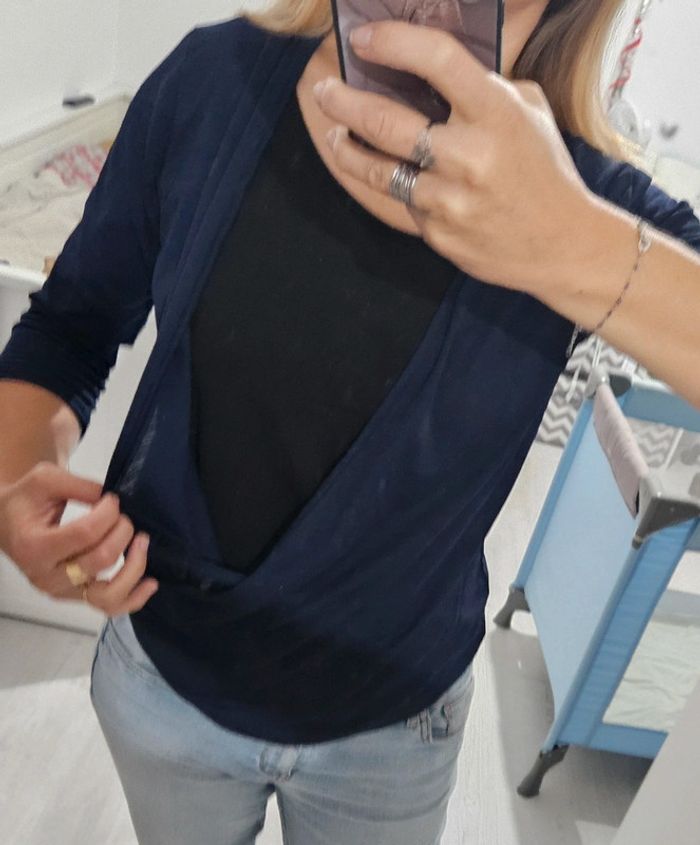Top 2 en 1 bleu marine /noir manches mi-longues T 38 /40 - photo numéro 2