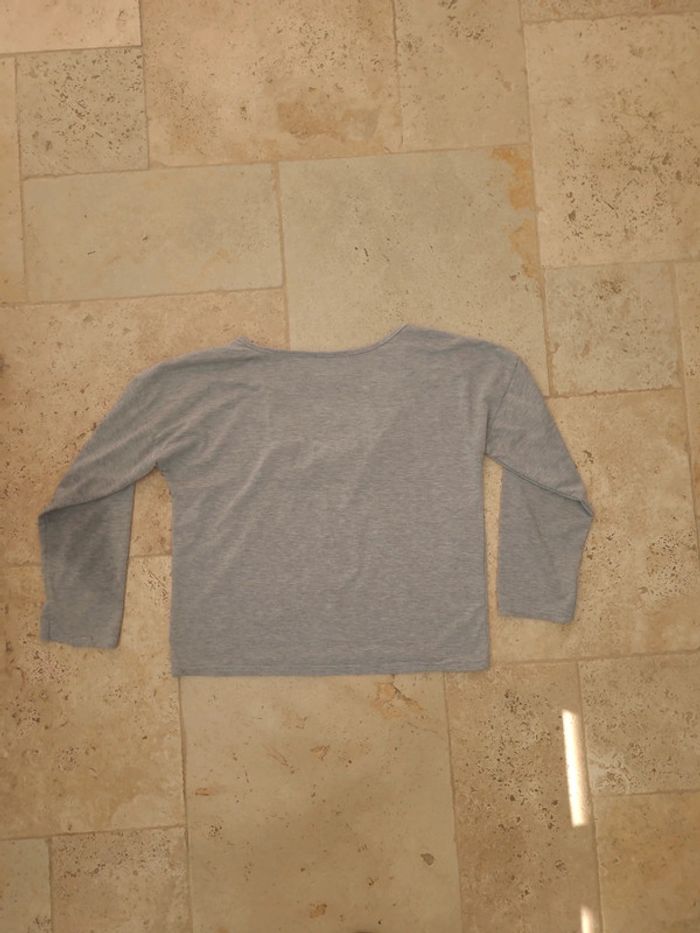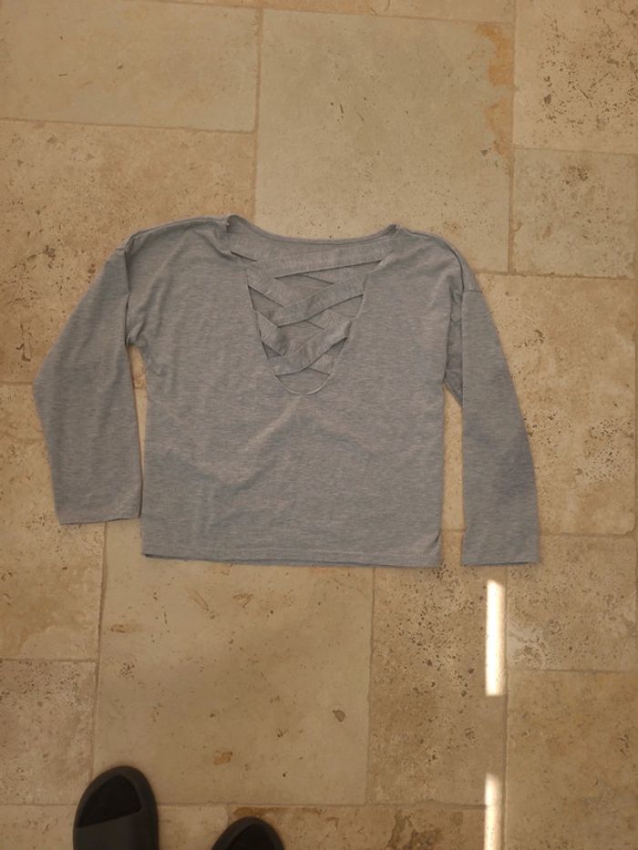 T-shirt manches longues gris décolleté dans le dos croisé - photo numéro 2