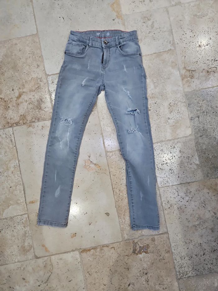 Jean gris troué slim garçon T 11 12 ans