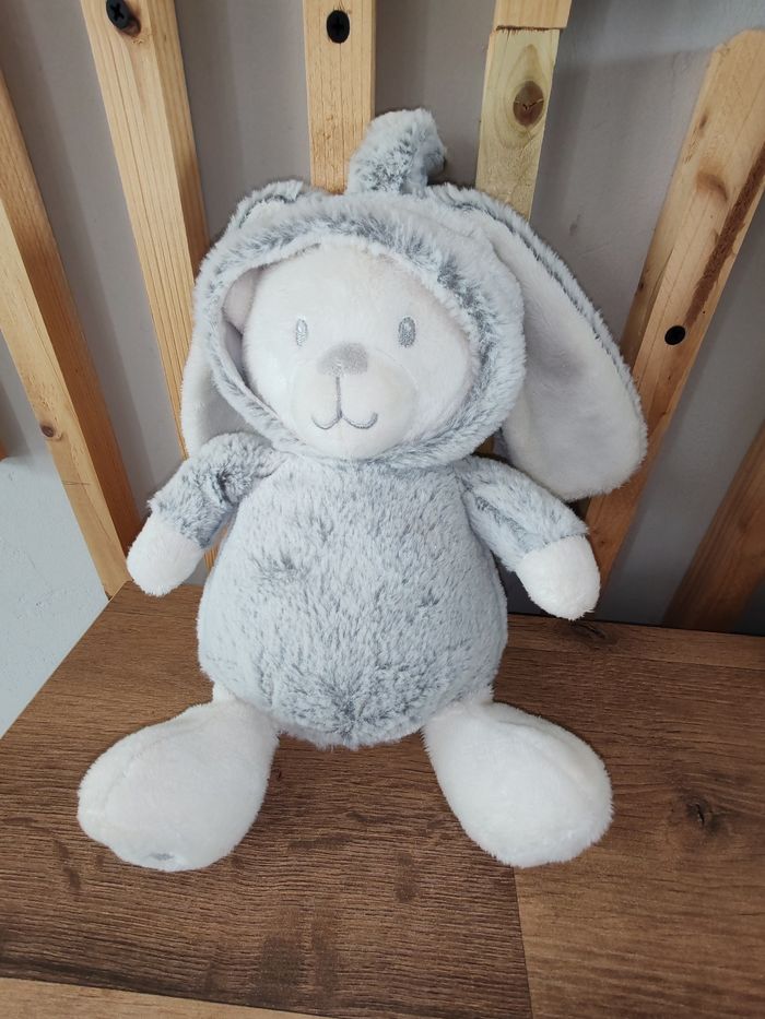 Prémaman Peluche ours en velours et sherpa avec capuche pour se déguiser en lapin Gris et blanc Tbe Étiquette marque présente 14.90 euros envoi en relais