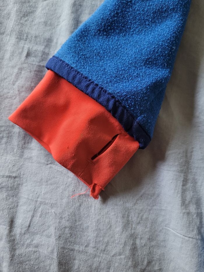 sweat bleu orange 12ans kalenji 1 trou au bout d une manche sinon bon état (2e)