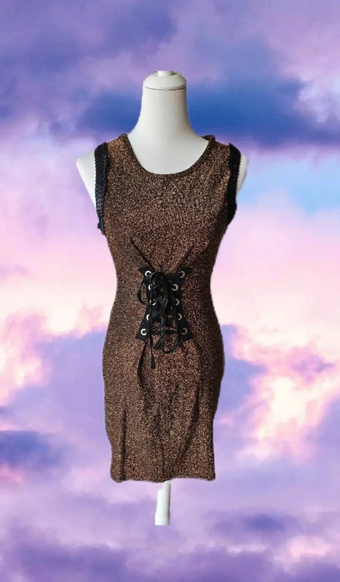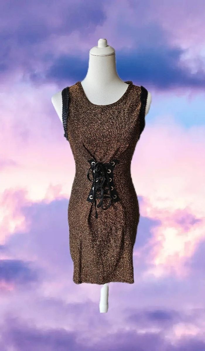 Robe pailletée marron/doree avec cordage