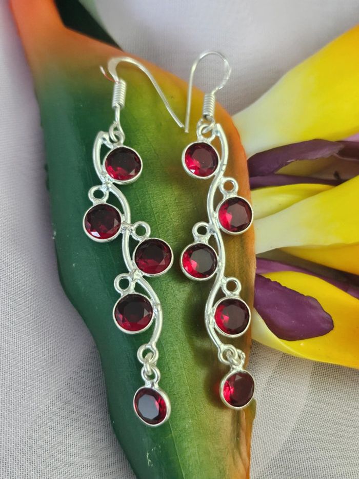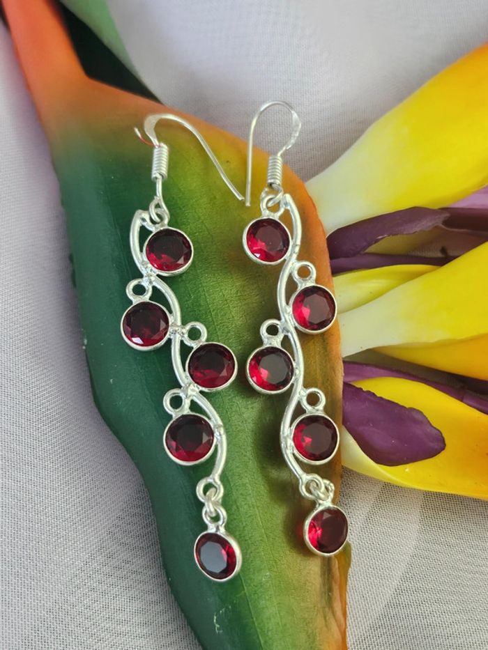 Boucles d'oreilles en argent sterling 925 avec pierre grenat rouge - photo numéro 1