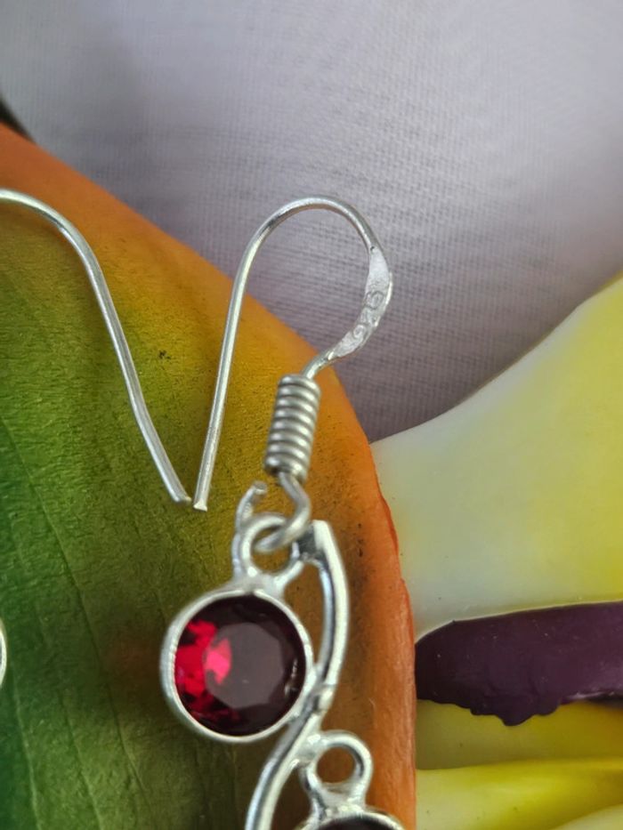 Boucles d'oreilles en argent sterling 925 avec pierre grenat rouge - photo numéro 4