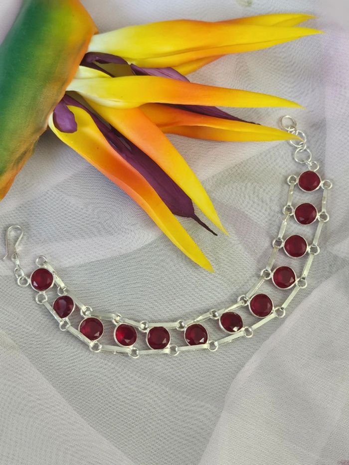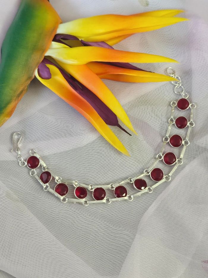 Bracelet en argent Sterling 925 avec ses pierres grenat rouge - photo numéro 1