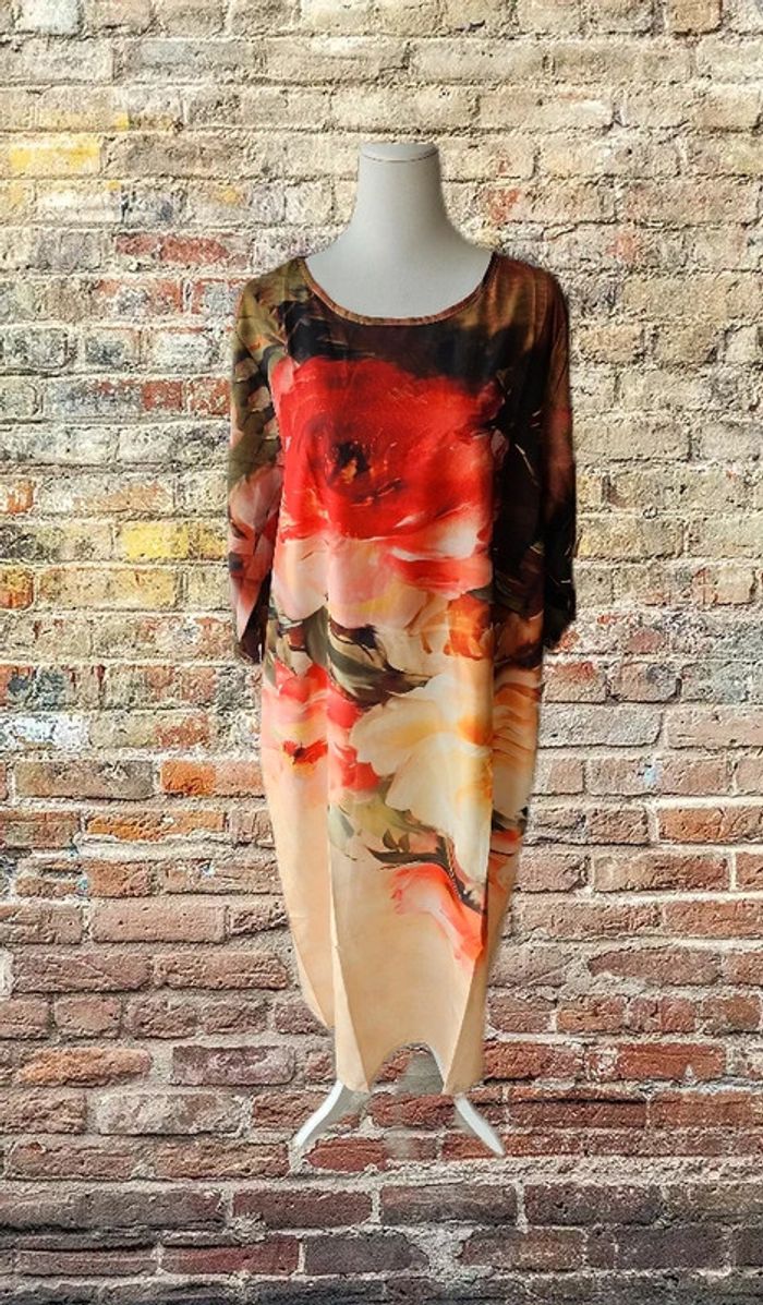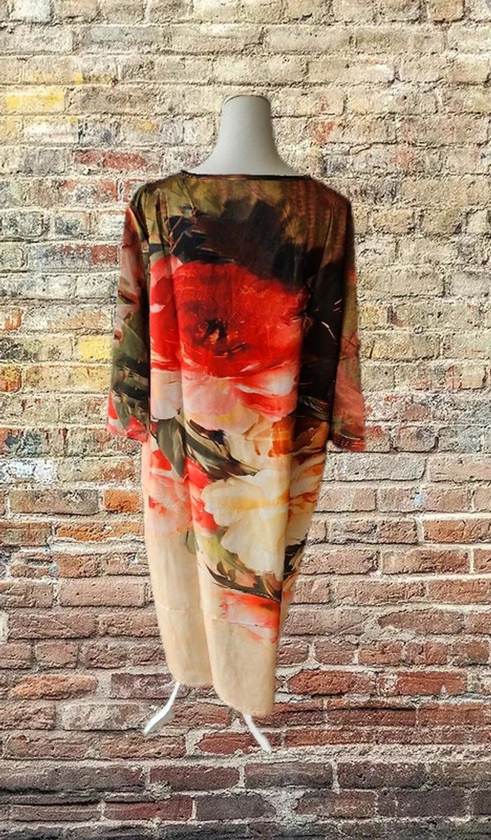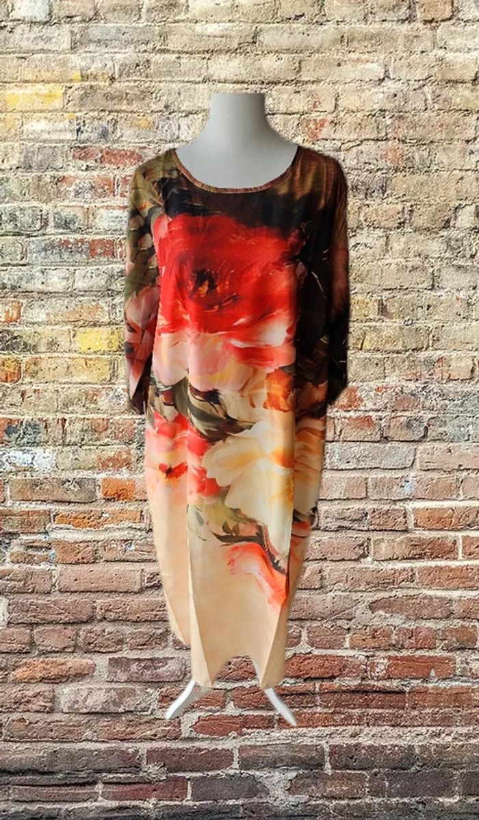 Robe longue droite fleurie Sans marque Taille 3 XL(52) Tres bon état ( portee 1 fois) 100% polyester Aisselles à Aisselles : 61 cm Epaules à epaules : 47 cm Hanches: 71 cm Longueur: 132 cm (08/06/2025*895)