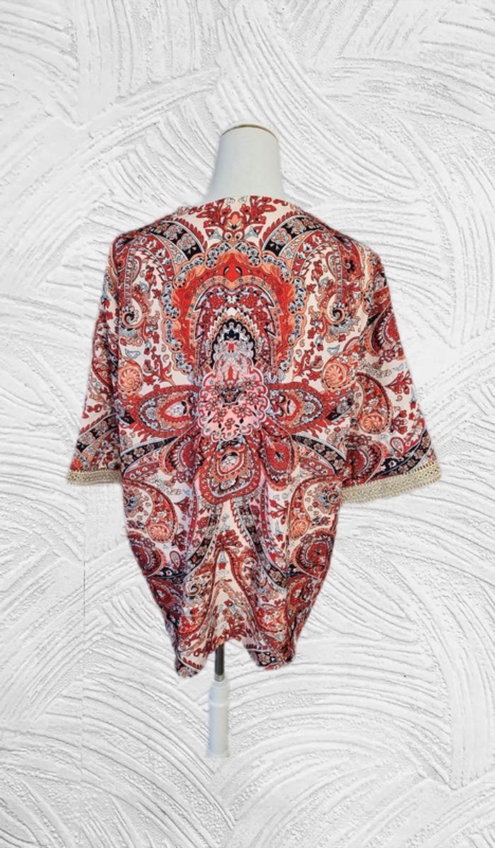 Blouse satinee a motifs cachemire et dentelle crochetee, sans marque,  taille 2 XL (48) - photo numéro 2