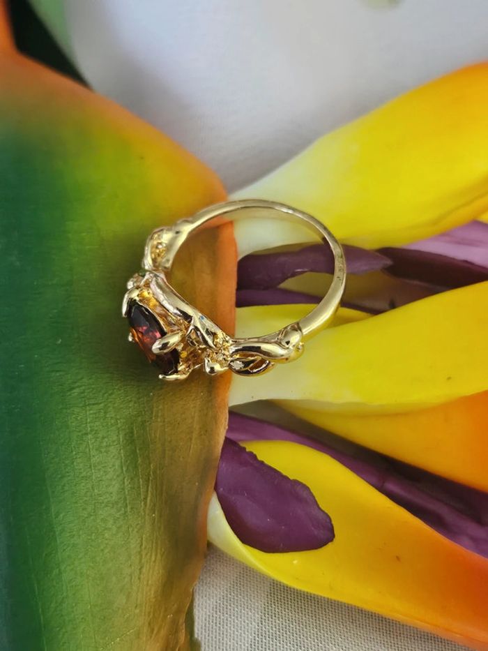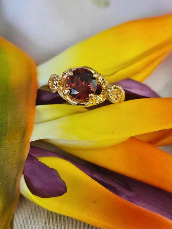 Bague avec sa pierre grenat rouge, acier inoxydable - photo numéro 1
