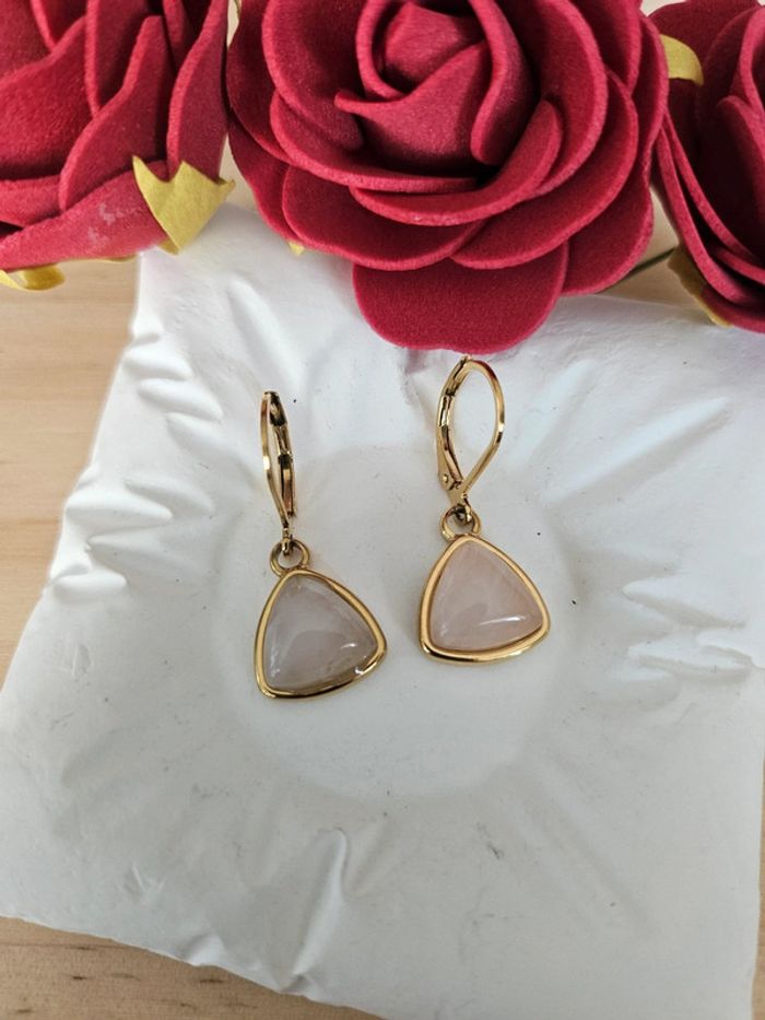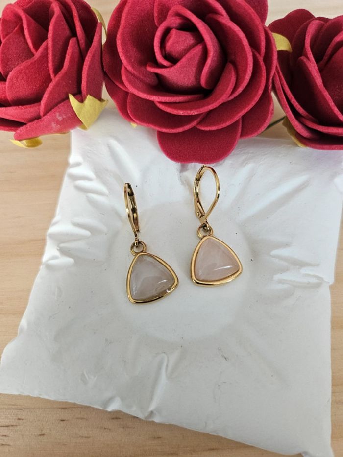 Boucles d'oreilles dormeuses avec pierres de quartz rose Neuves sans étiquette, jamais portées En acier inoxydable hypoallergenique haute qualité Ne noircit pas au fil du temps Ne rouille pas Bonne résistance au passage sous l eau Pour oreilles percées (03/06/2025*857)