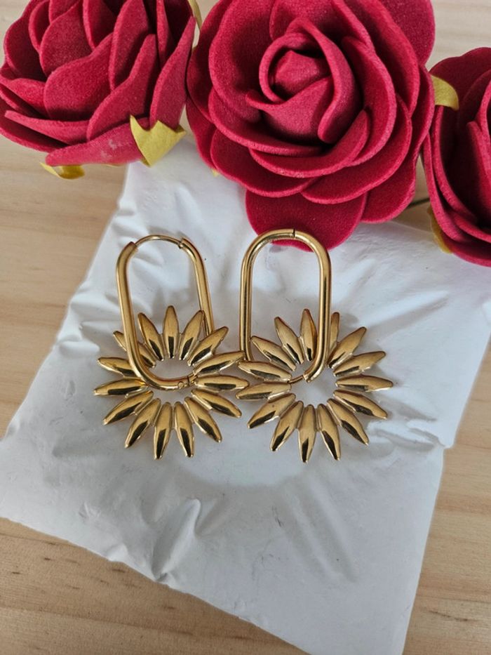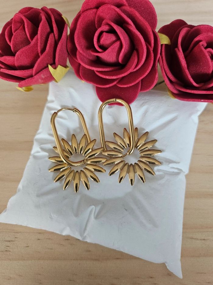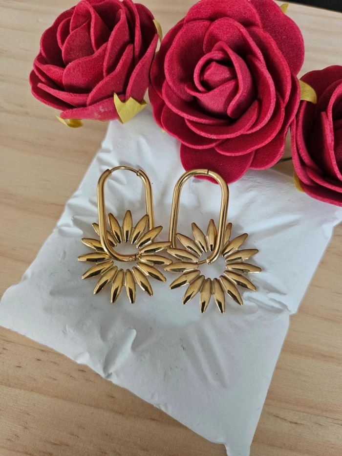 Boucles d'oreilles dormeuses tournesol Neuves sans étiquette, jamais portées En acier inoxydable hypoallergenique haute qualité Ne noircit pas au fil du temps Ne rouille pas Bonne résistance au passage sous l eau Pour oreilles percées (03/06/2025*856)