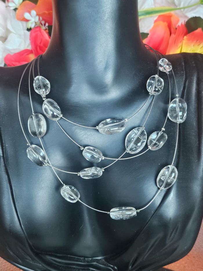 Collier avec ses pierres transparente, ikita, acier inoxydable - photo numéro 1