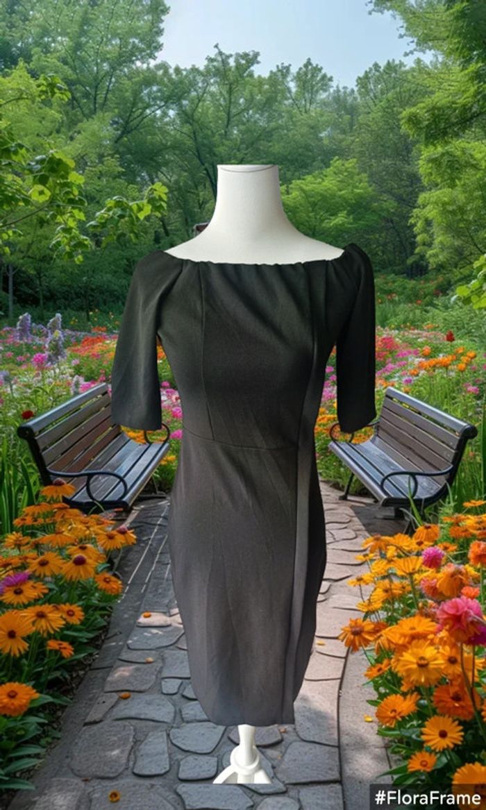 Robe droite noire De marque Made in italy Taille 40 Tres bon état 95% polyester/ 5% elastane Aisselles à Aisselles : 39 cm Hanches: 41 cm Longueur: 100 cm Élastique au col Fendue a l avant (01/06/2025*839)