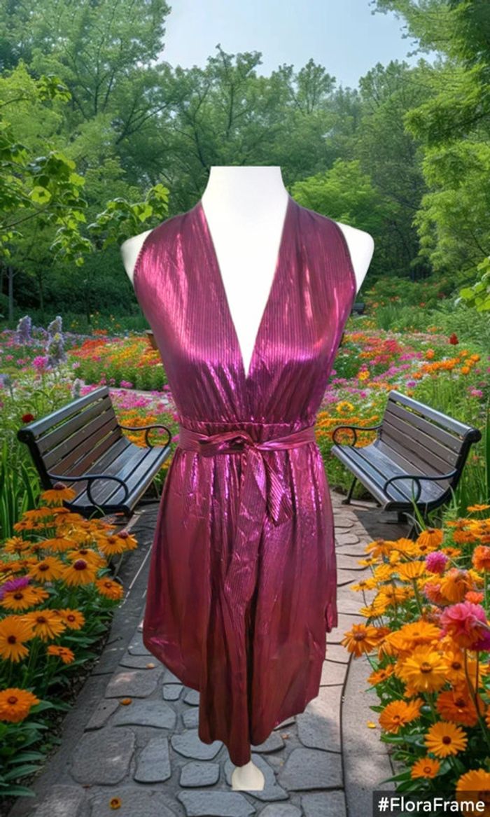 Robe satinee fushia brillante, Sans marque, taille S - photo numéro 3