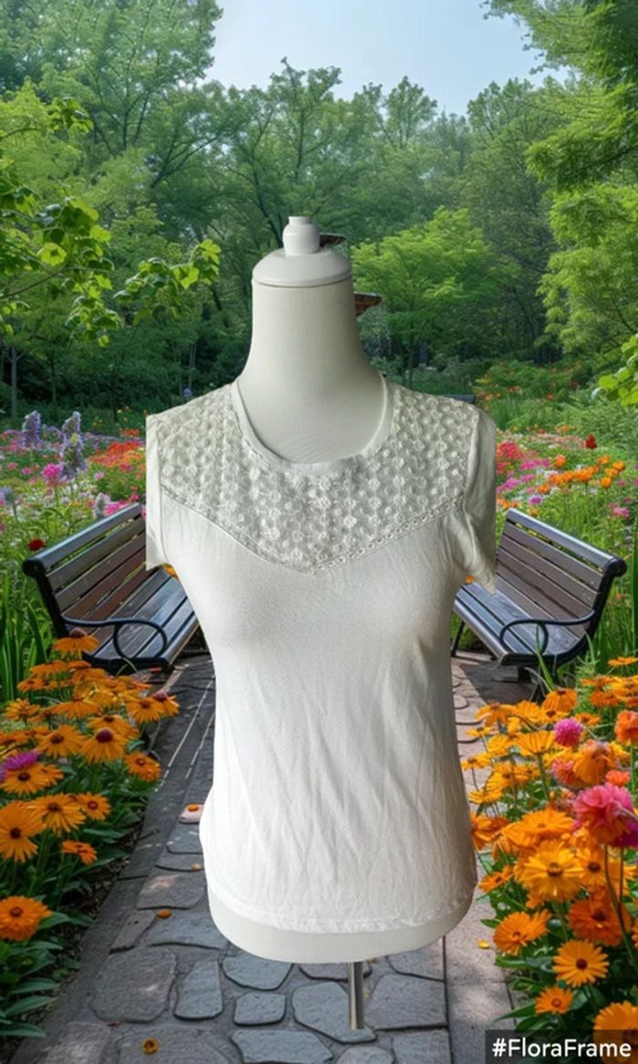 Tee shirt blanc avec dentelle, cache cache, taille 40 - photo numéro 1