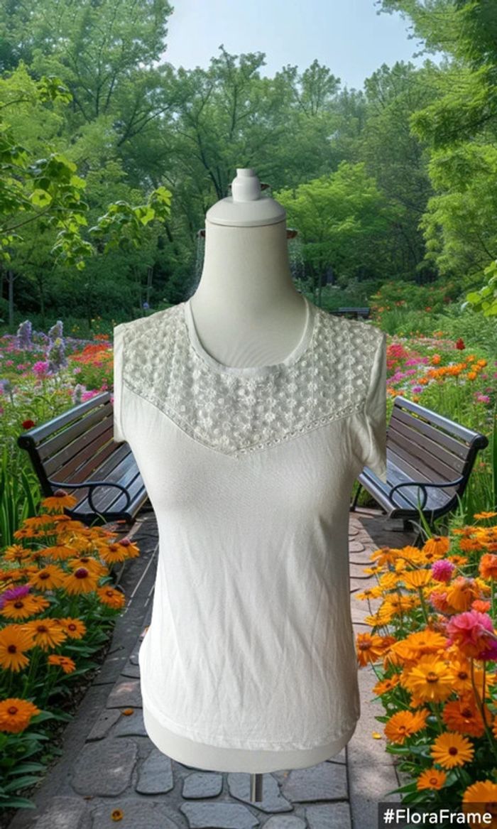 Tee shirt blanc avec dentelle, cache cache, taille 40 - photo numéro 3