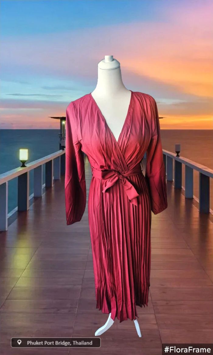 Robe longue plissée bordeau avec sa ceinture, Sans marque, taille S - photo numéro 3
