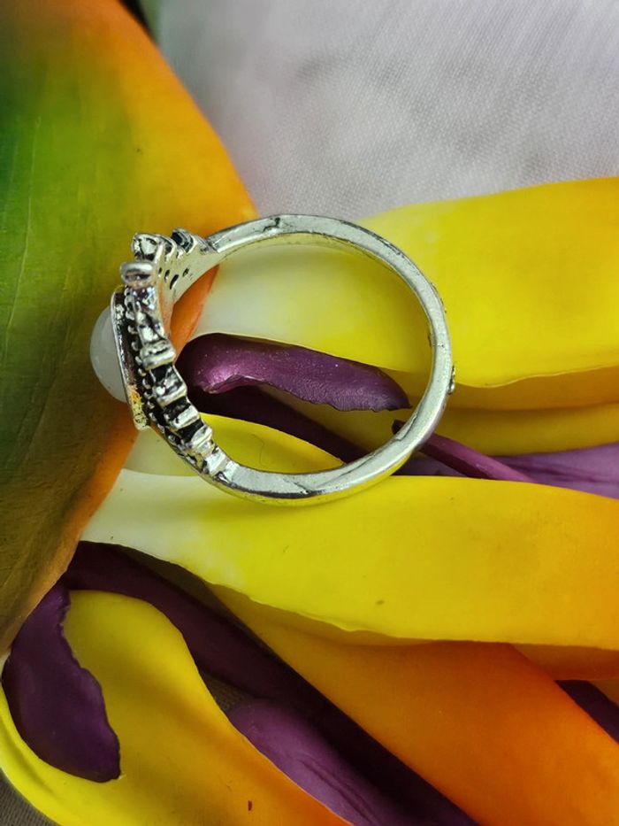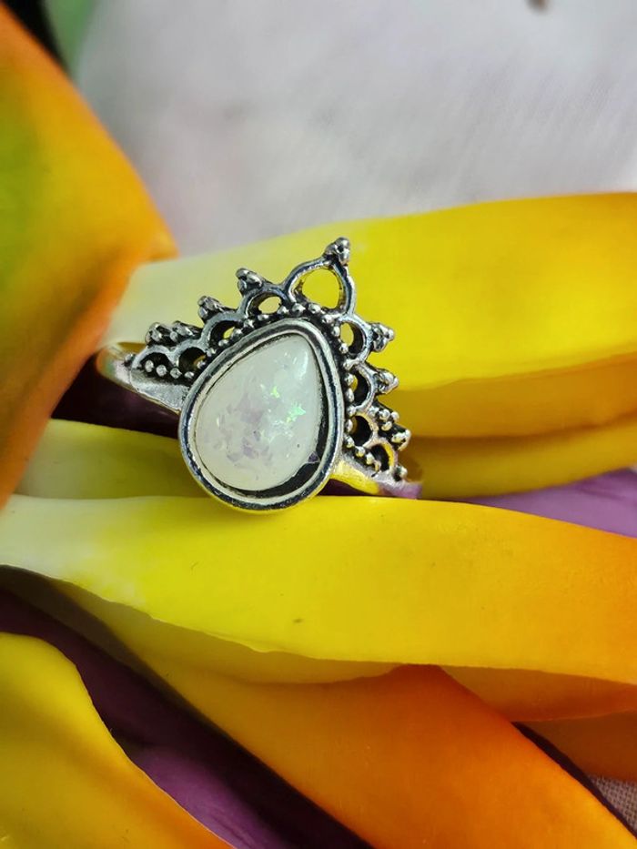 Bague texturee avec sa pierre sélénite modèle 9, acier inoxydable - photo numéro 4