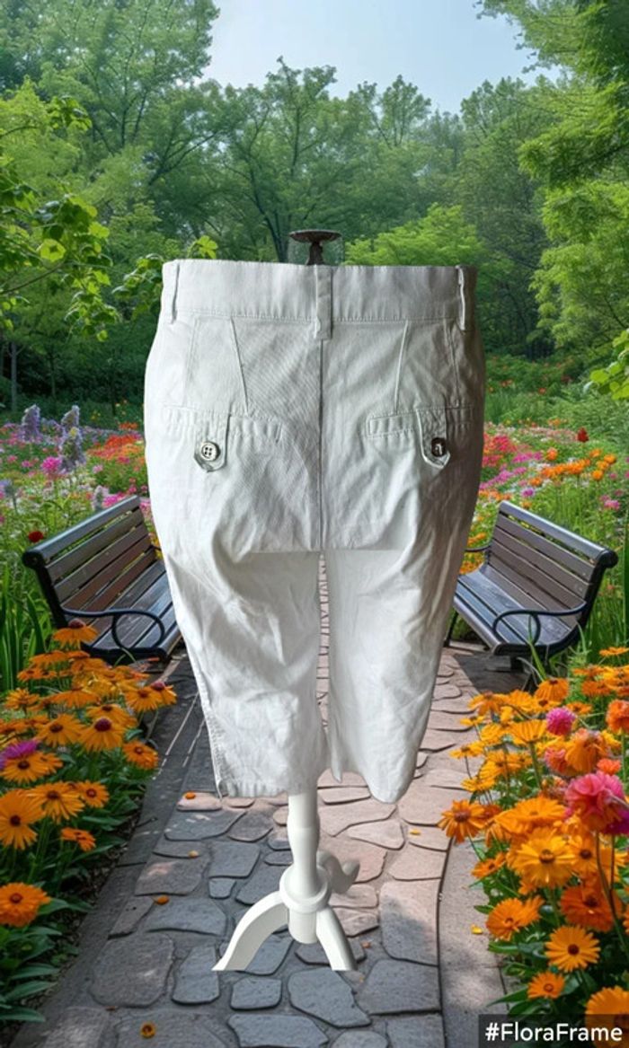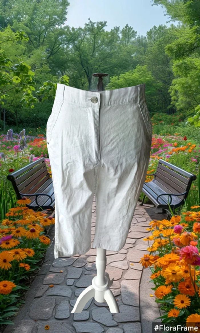 Pantacourt blanc De marque scottage Taille 38 Tres bon état 97% coton / 3% elastane Largeur taille: 37 cm Hanches: 44 cm Largeur bas de jambes : 17 cm Longueur: 65 cm (31/05/2025*817)