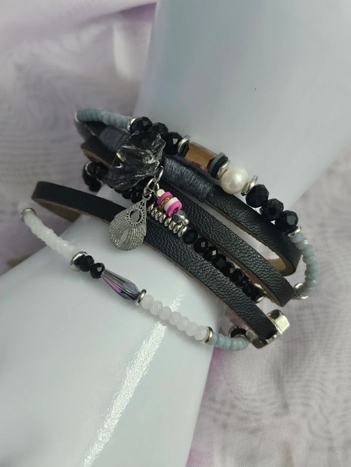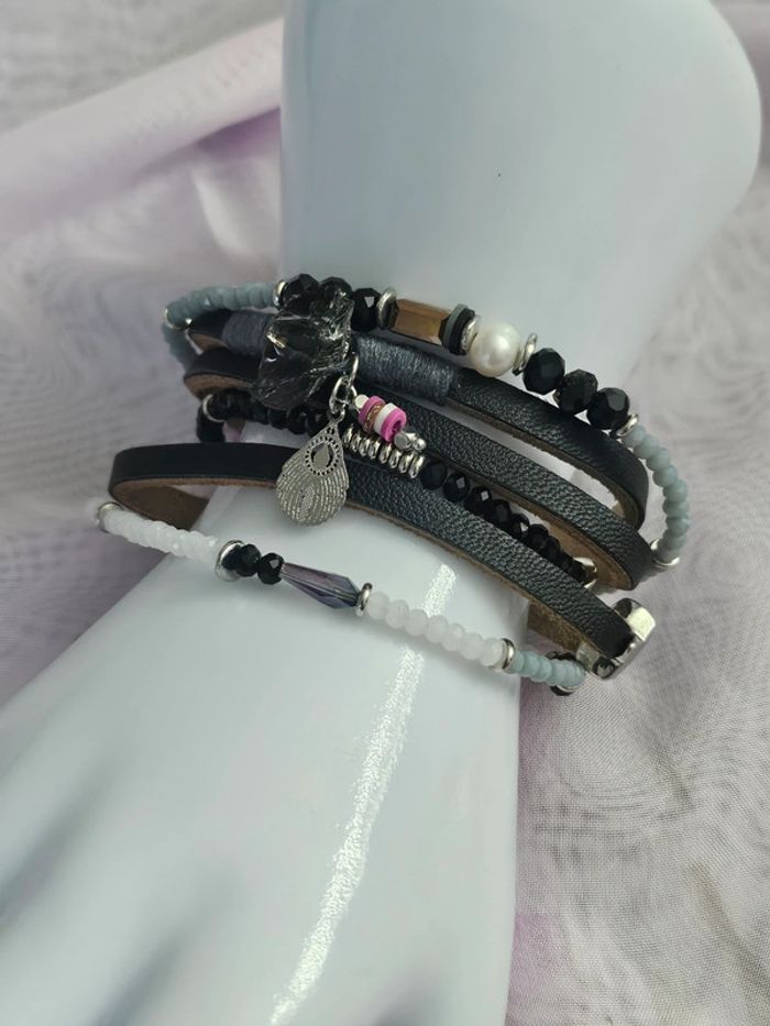 Bracelet aimanté simili cuir avec ses breloques, Ikita, acier inoxydable - photo numéro 1