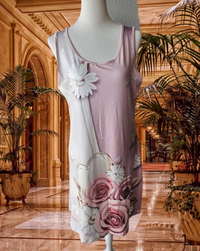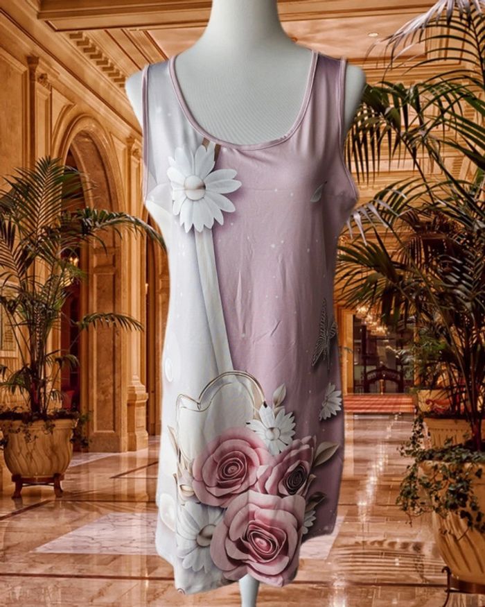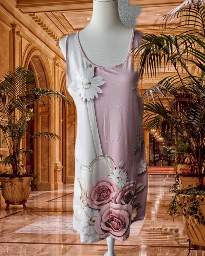 Robe droite satinee avec ses fleurs, Sans marque, taille XL - photo numéro 2