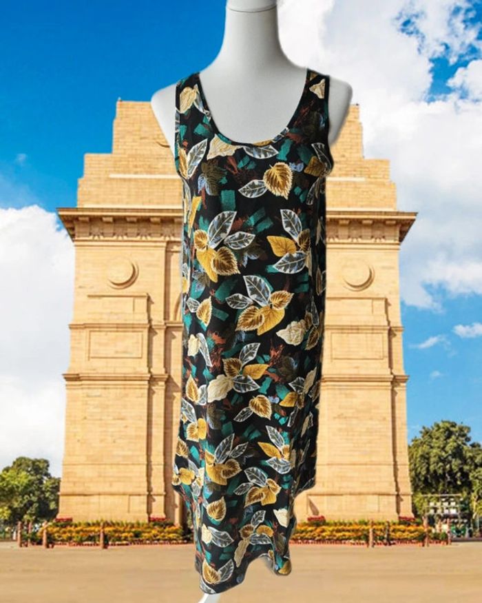 Robe longue avec ses feuilles Sans marque Taille S/M Tres bon état 100% viscose Aisselles à Aisselles : 46 cm Hanches: 52 cm Longueur: 115 cm (24/05/2025*751)