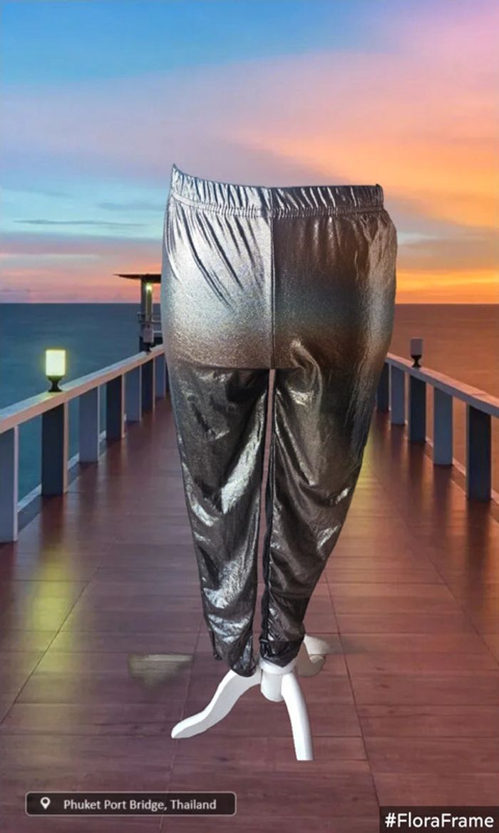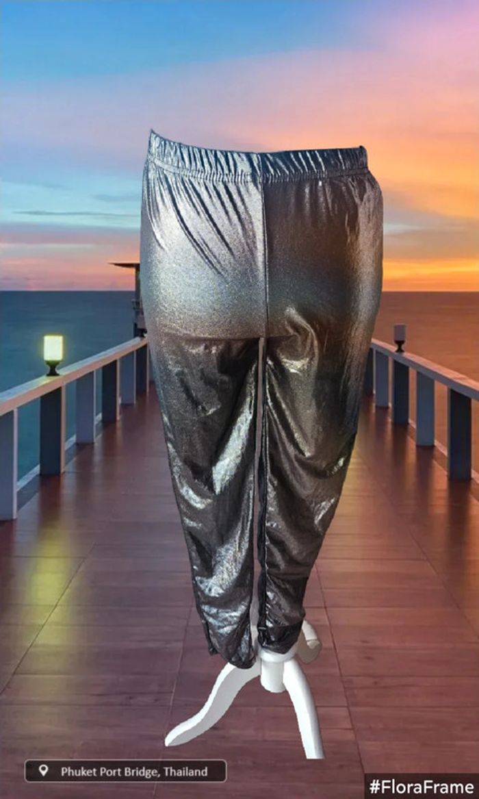 Legging brillant argenté De marque La city Taille L Neuf avec étiquette 94% polyester/ 6% elastane Largeur taille : 34 cm Hanches: 39 cm Largeur bas de jambes : 10 cm Longueur: 95 cm Élastique à la taille (28/05/2025*790)
