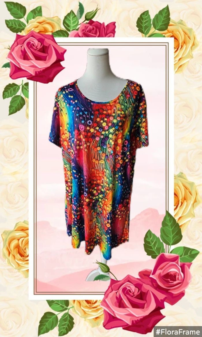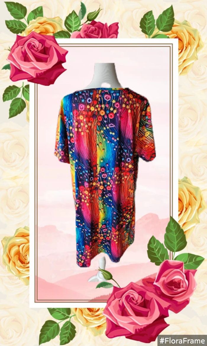 Robe satinee fleurie multicolore Sans marque Taille 3 XL (52) Tres bon état( portée une fois) 95% polyester/ 5% spandex Aisselles à Aisselles : 61 cm Hanches: 65 cm Longueur: 95 cm (27/05/2025*767)