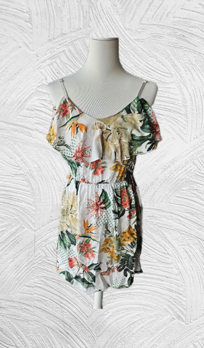 Robe avec ses fleurs multicolore De marque New collection Taille 38 Tres bon état 95% coton 5% elastane Aisselles à Aisselles : 37 cm Hanches: 35 cm Longueur: 84 cm Élastique à la taille Bretelles réglables (21/05/2025*724)