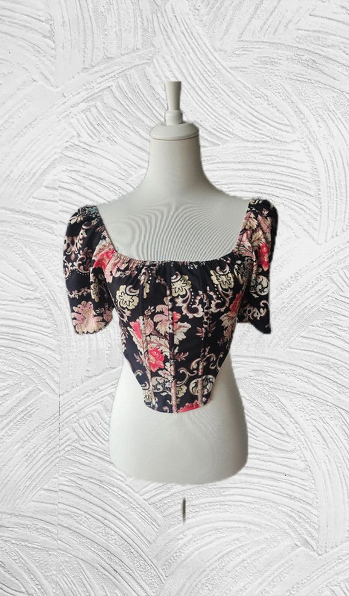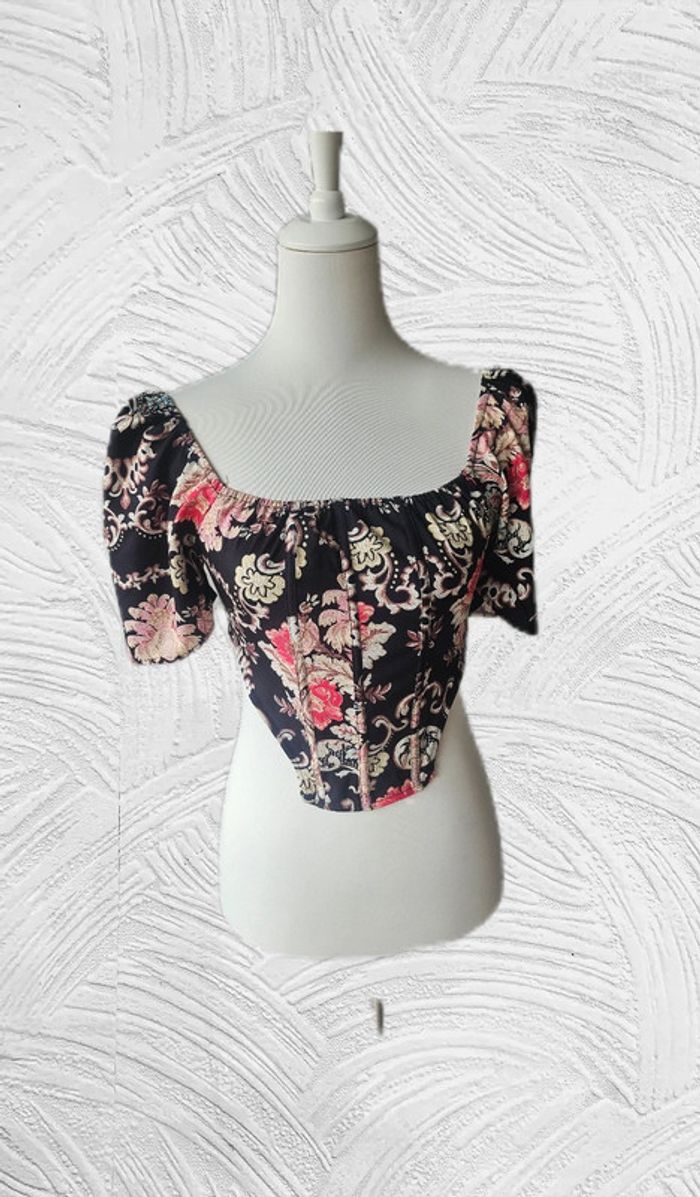 Blouse courte a motifs cachemire, sans marque, taille 36 - photo numéro 1