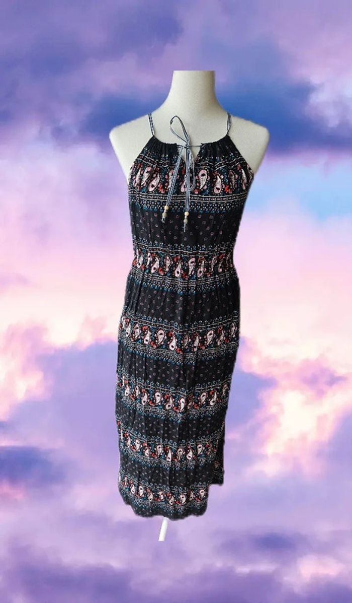 Robe longue a motifs cachemire De marque D&Z fashion Taille unique Tres bon état 100% coton Aisselles à Aisselles: 38 cm Hanches: 41 cm Longueur: 130 cm Élastique à la taille (20/05/2025*711)