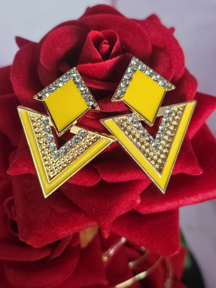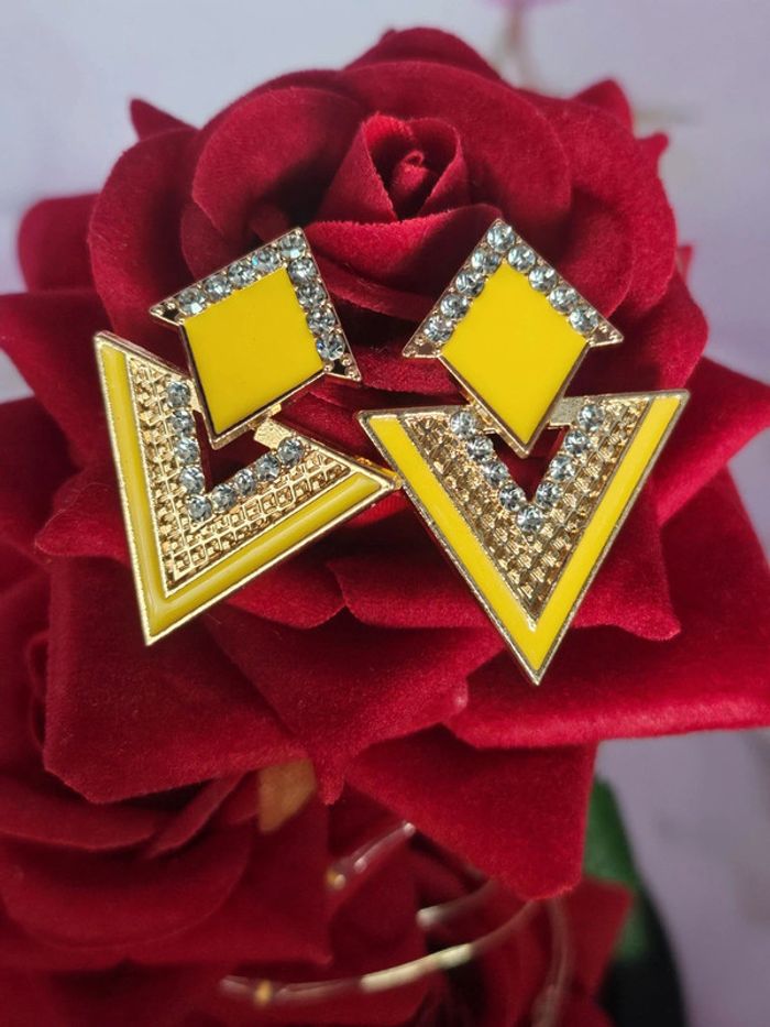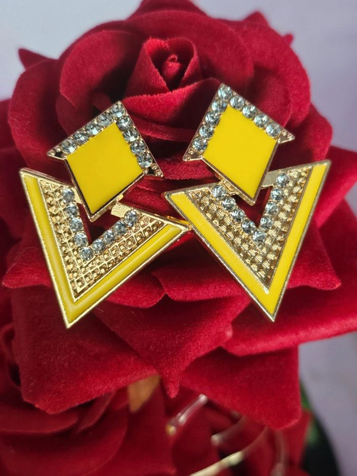 Boucles d oreillzs triangles jaunes avec zirconium Neuves sans étiquette, jamais portées De marque Aihhq En acier inoxydable hypoallergenique haute qualité Ne noircit pas au fil du temps Ne rouille pas Bonne résistance au passage sous l eau Pour oreilles percées (19/05/2025*702)