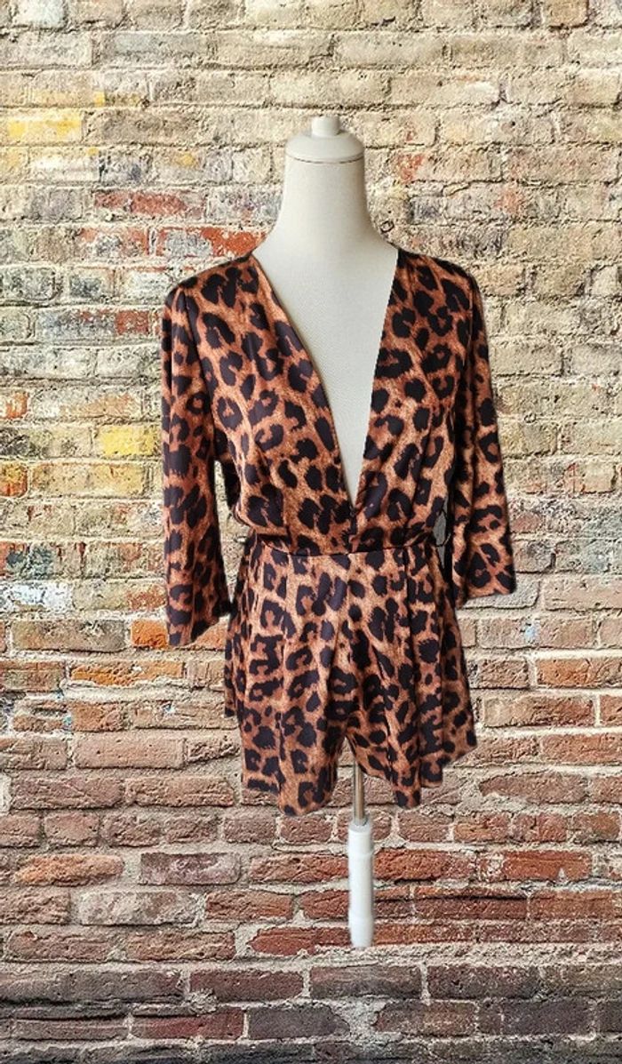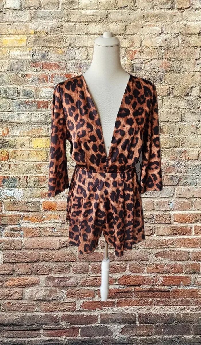 Combishort imprimée satinee  léopard, sans marque, taille 36/38 - photo numéro 1