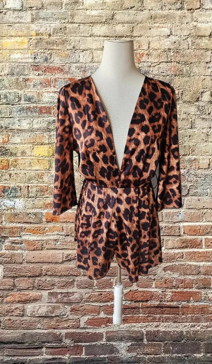 Combishort imprimée satinee léopard Sans marque Taille 36/38 Tres bon état 100% polyester Aisselles à Aisselles: 38 cm Hanches: 30 cm Largeur bas de cuisse : 35 cm Longueur: 75 cm Élastique à la taille derrière (19/05/2025*699)