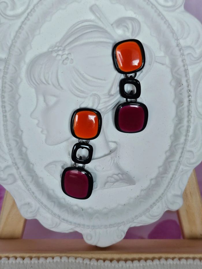 Boucles d oreilles avec ses carrés colorés, ikita, acier inoxydable hypoallergenique - photo numéro 2