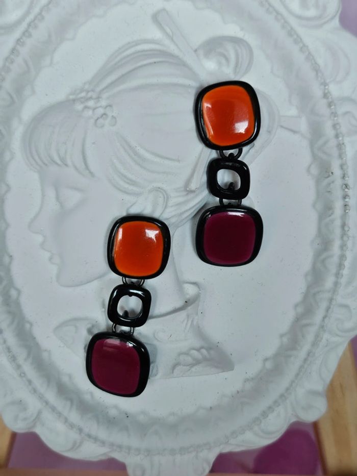 Boucles d oreilles avec ses carrés colorés, ikita, acier inoxydable hypoallergenique - photo numéro 3